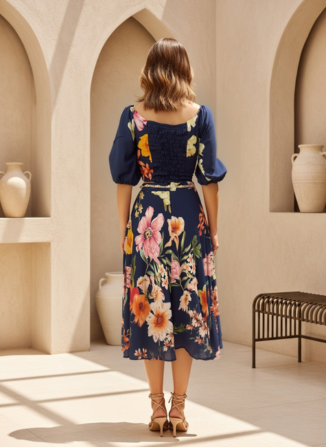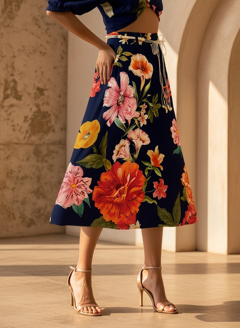 Essa saia midi é a escolha perfeita para quem busca um visual elegante, feminino e marcante. Com estampa floral vibrante, ela traz um toque tropical sofisticado, ideal para compor looks em ocasiões casuais ou mais refinadas. A modelagem evasê valoriza a silhueta com leveza e fluidez, proporcionando movimento e conforto ao caminhar. O cós ajustado com amarração acrescenta um detalhe charmoso e garante melhor caimento ao corpo. Combine com sandálias de salto ou rasteiras para um look versátil e cheio de personalidade.